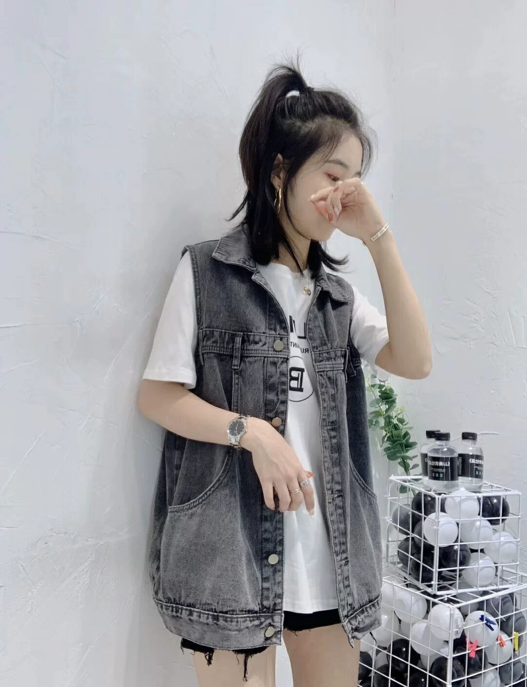 2021 mới phong cách Hàn Quốc áo vest denim rời phụ nữ mùa xuân, mùa thu và mùa hè cộng với kích thước áo khoác không tay của phụ nữ Áo khoác ghi lê thời trang - Áo vest