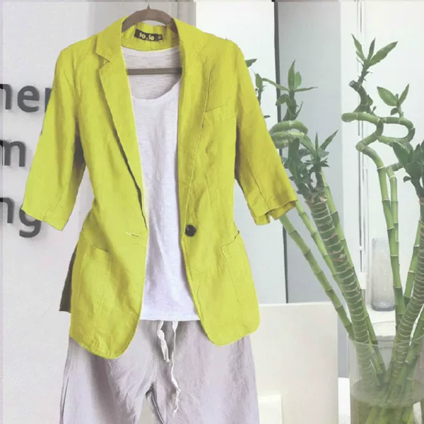 2021 mùa xuân mới vải lanh màu dài trung bình dài tay vải lanh nhỏ áo khoác vải lanh nhỏ phù hợp với quần áo phụ nữ - Business Suit