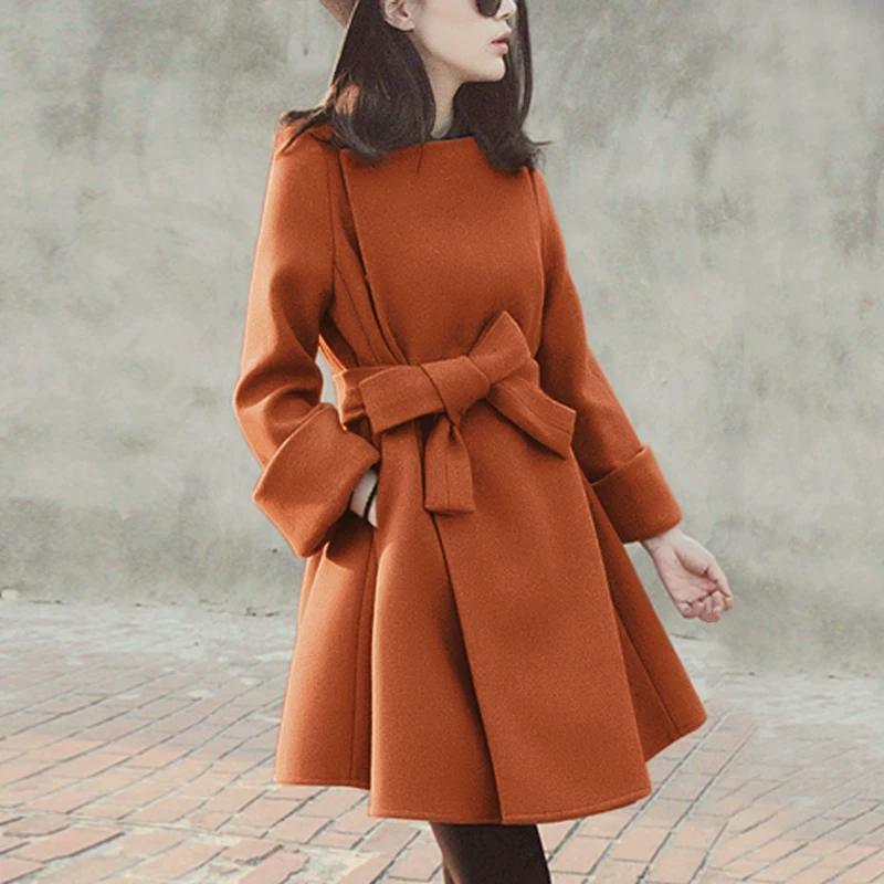 2021 mùa thu và mùa đông mới thời trang phụ nữ quần áo nhỏ dày phù hợp với đầu thắt lưng tính khí buộc áo khoác len phụ nữ - Accentuated eo áo