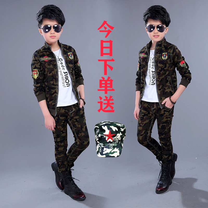 Quần áo trẻ em ngụy trang lực lượng đặc biệt mùa xuân và mùa thu nhỏ và trung niên phù hợp với trẻ em hai / ba bộ - Phù hợp với trẻ em