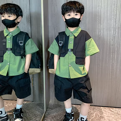 Quần áo trẻ em bé trai bộ đồ mùa hè 2020 phong cách phương tây mới của trẻ em phiên bản hàn quốc của cậu bé lớn mùa hè đẹp trai bộ đồ hai mảnh - Phù hợp với trẻ em