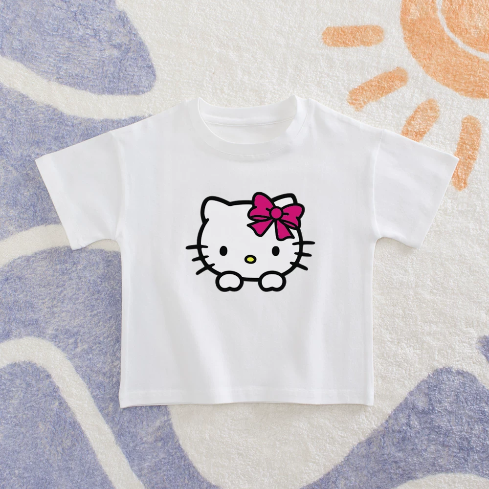 Cô gái mèo Kitty áo thun ngắn tay mùa hè 2020 mới cho trẻ em cotton nửa tay cho trẻ em quần áo trẻ em Hello Kitty - Áo thun