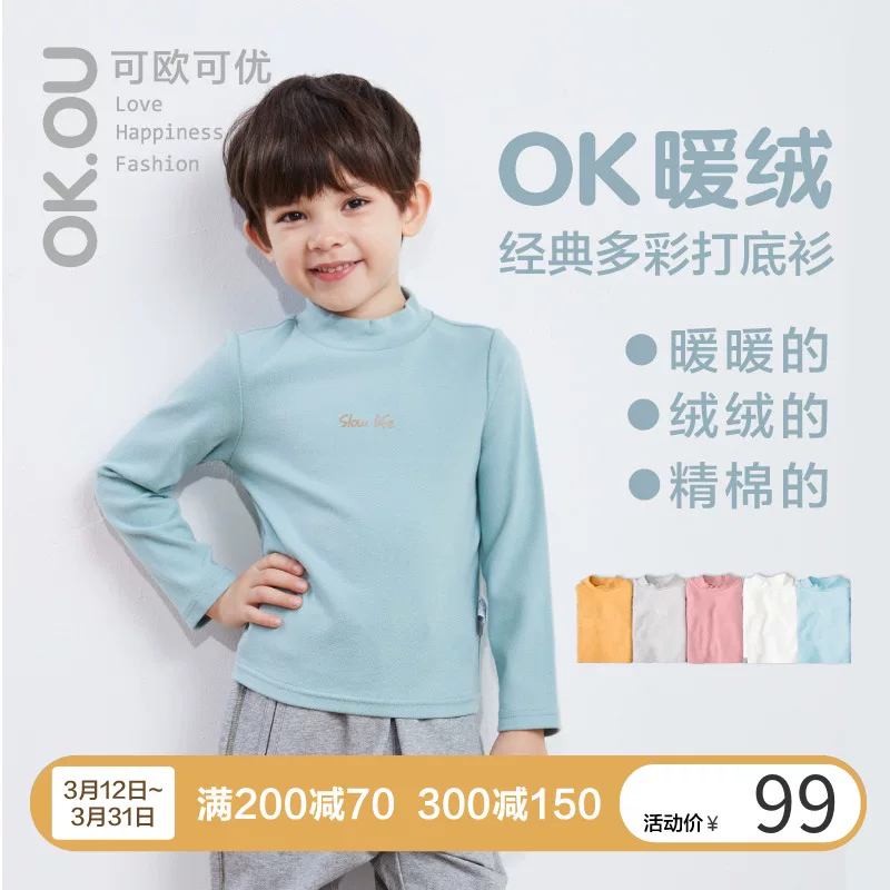 OK.OU có thể quần áo trẻ em nam và nữ của Key Key đứng cổ áo dài tay nam kho báu nữ kho báu mùa xuân và mùa thu vẻ đẹp hoang dã nhà bé - Áo thun