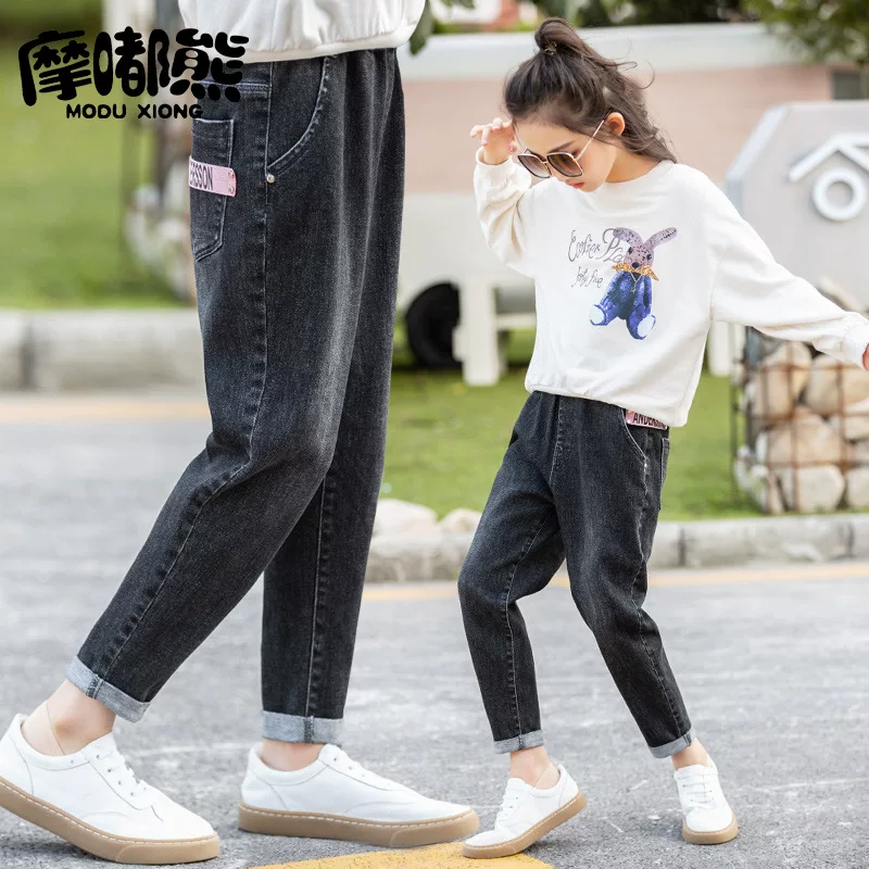 Quần jean nữ phong cách nước ngoài mùa xuân và mùa thu 12 đứa trẻ lớn 15 tuổi quần cha mùa thu trẻ em lỏng lẻo quần bé gái - Quần