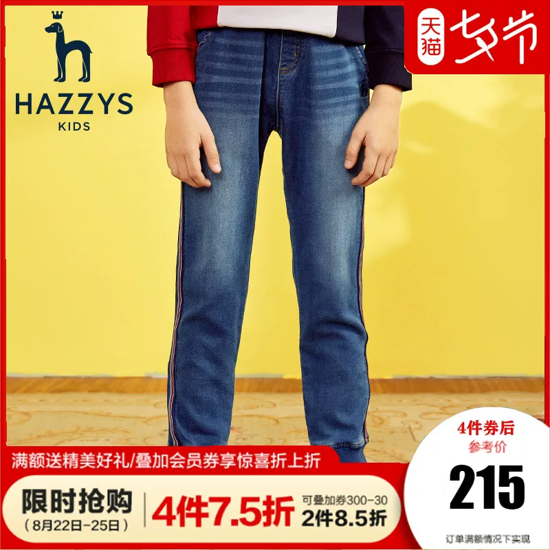 quần áo trẻ em hazzys quần áo bé trai mùa xuân 2020 trẻ lớn thời trang tương phản màu quần jean mỏng cổ điển - Quần