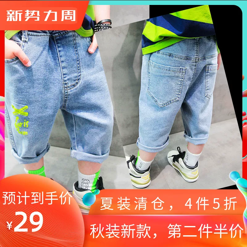 Quần denim trẻ em, quần năm điểm bé trai, quần bảy điểm cho bé trai, quần lửng mùa hè, quần dài phong cách hàn quốc - Quần