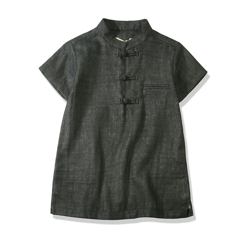 Áo tay dài, tay cánh dơi, áo sơ mi trẻ em, vải cotton ngắn tay nam, vải lanh, văn học và nghệ thuật, áo sơ mi trơn màu, quần áo trẻ em nam mặc thường ngày - Áo sơ mi