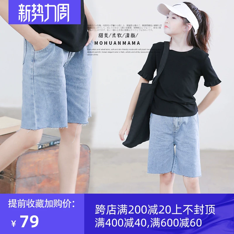 Quần short denim cô gái mùa hè mỏng năm 2020 mới cạp cao rộng rãi trẻ em trung niên quần hot quần tây phong cách quần năm điểm - Quần jean