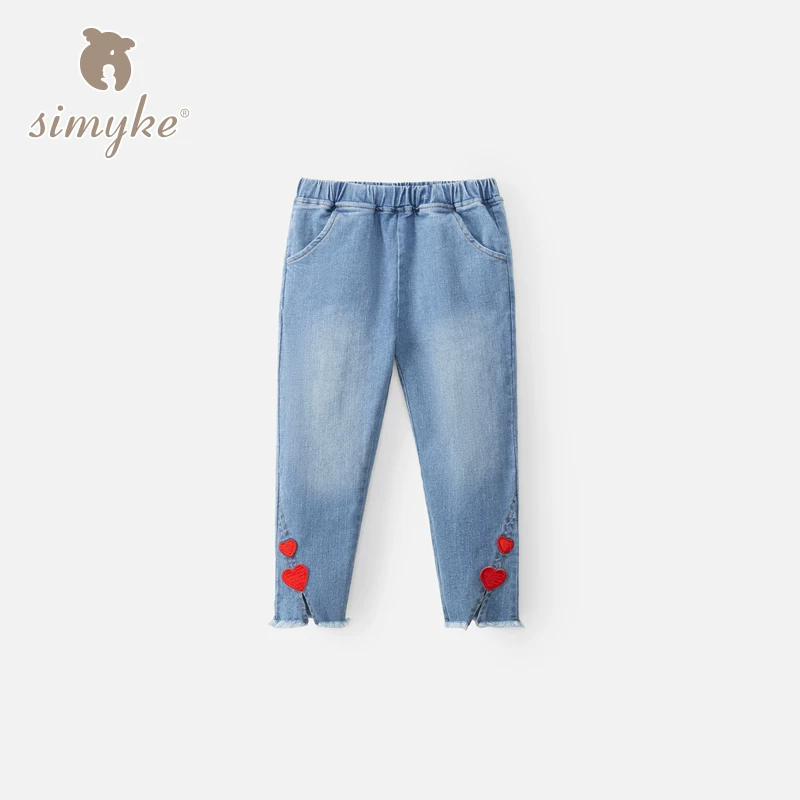 Quần jean nữ Shimike 2020 Mùa xuân tình yêu quần trẻ em Quần ngọt ngào Quần thẳng - Quần jean