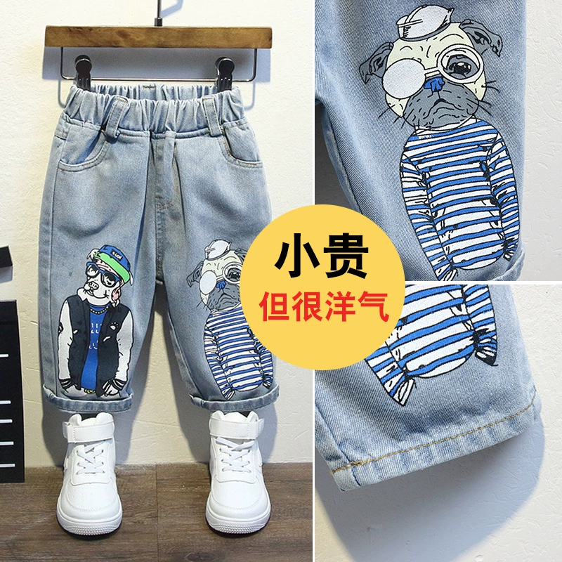 Quần jean bé trai mùa hè 2020 phong cách phương tây mới trung và nhỏ bé trai hoạt hình đẹp trai quần cắt ngắn trẻ em quần mỏng - Quần jean