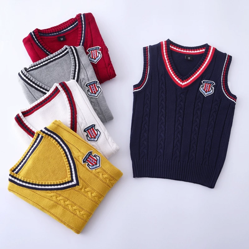 Bé trai áo len cổ V áo len dệt kim ghi lê áo ghi lê cotton áo vest trẻ em 3-12-15 tuổi trẻ em - Áo ghi lê