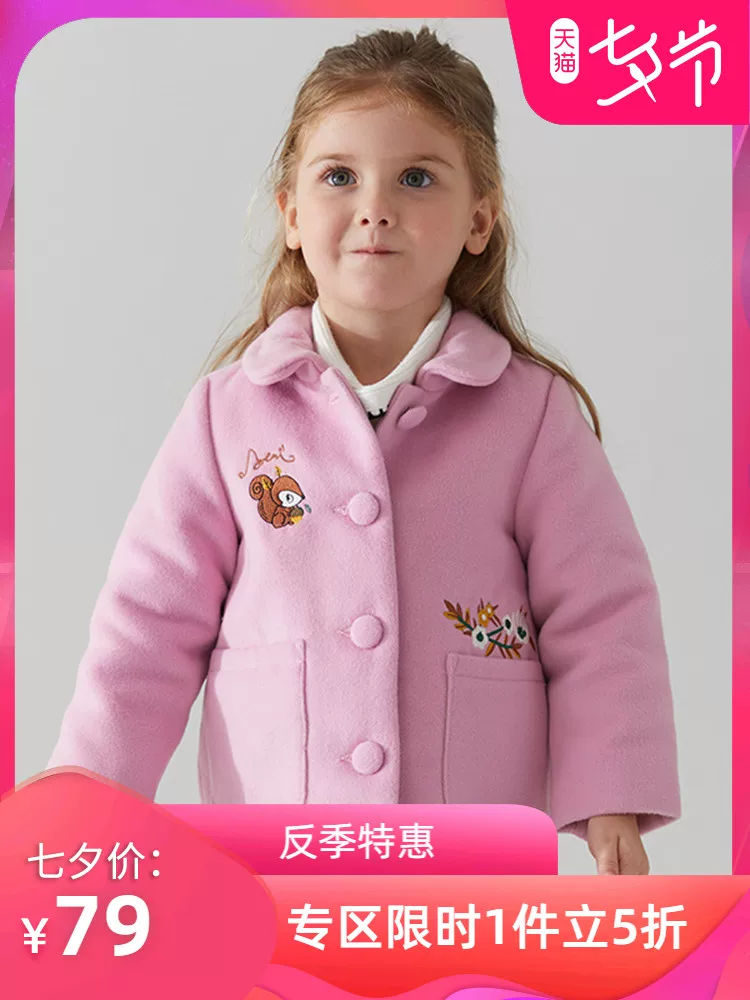 Ếch hoàng tử quần áo trẻ em cô gái áo khoác len 2020 mùa xuân và mùa xuân mới nữ áo khoác len và áo khoác bông - Áo khoác