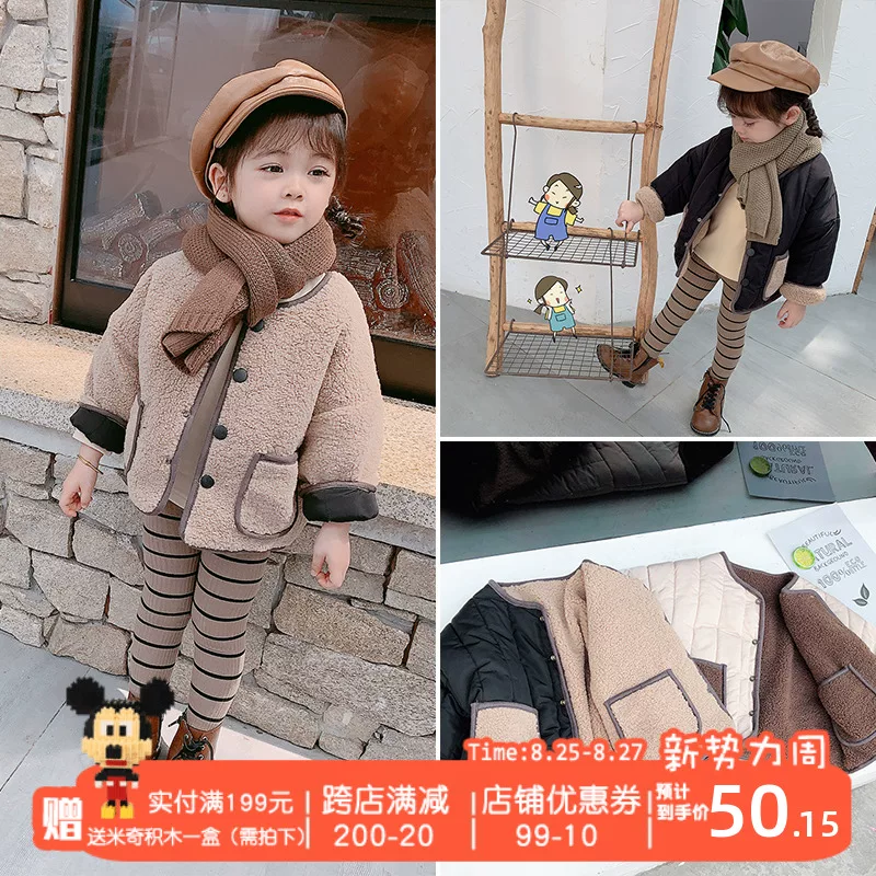19 áo khoác trẻ em mùa đông cho bé trai và bé gái ve áo len cừu giản dị áo khoác chần bông áo khoác áo khoác trẻ em - Áo khoác