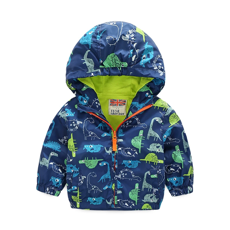 Áo gió trẻ em 2019 mới quần áo trẻ em trẻ em không thấm nước áo khoác khủng long bé trai trùm đầu khóa kéo áo phong cách mùa thu - Áo khoác