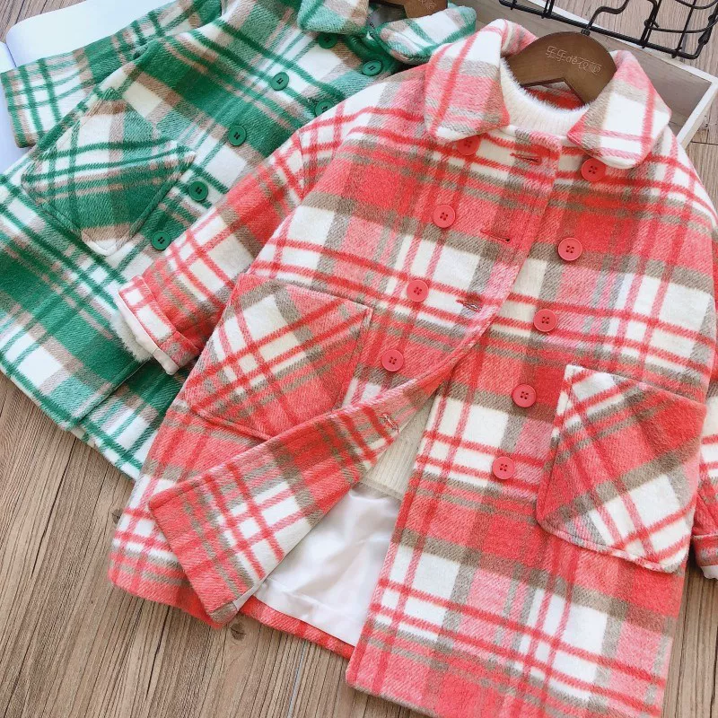 Little Birds Winter Plus Cotton dày dặn Áo khoác len trẻ em Thời trang phù hợp với Bé gái Áo khoác len kẻ sọc Chiều dài giữa - Áo khoác