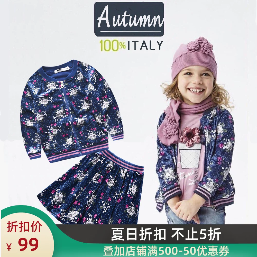 Quần áo trẻ em Ý hoa ngọt ngào nhung in hình cô gái mùa xuân và mùa thu Áo khoác bóng chày dài tay + váy phù hợp - Áo khoác