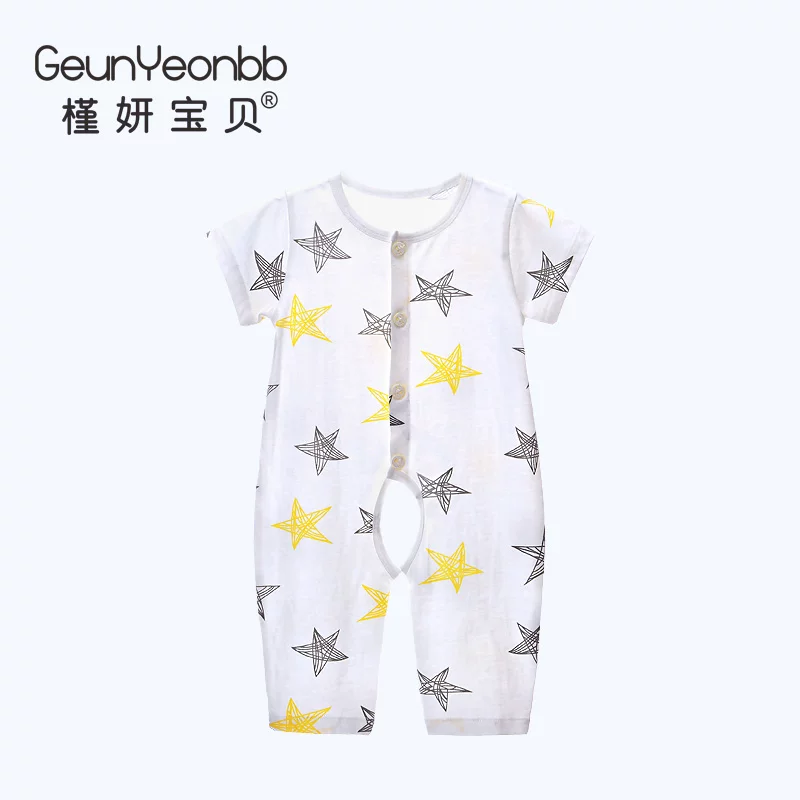 Quần áo sơ sinh mùa hè cotton mỏng sơ sinh trẻ sơ sinh romper bé tay ngắn điều hòa nhiệt độ quần áo quần áo liền quần - Áo liền quần