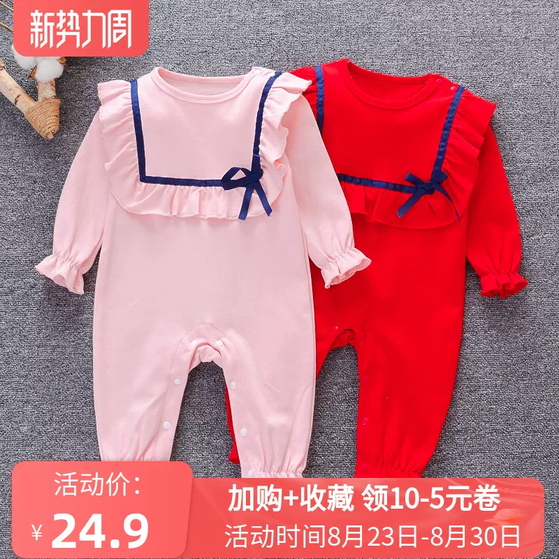 Quần áo nữ một mảnh cho bé 4 mùa xuân và mùa thu 5 đồ sơ sinh 2 bộ quần áo nhà sư màu đỏ lưới 1 bộ quần áo mùa hè 0 tháng 3 công chúa dễ thương - Áo liền quần