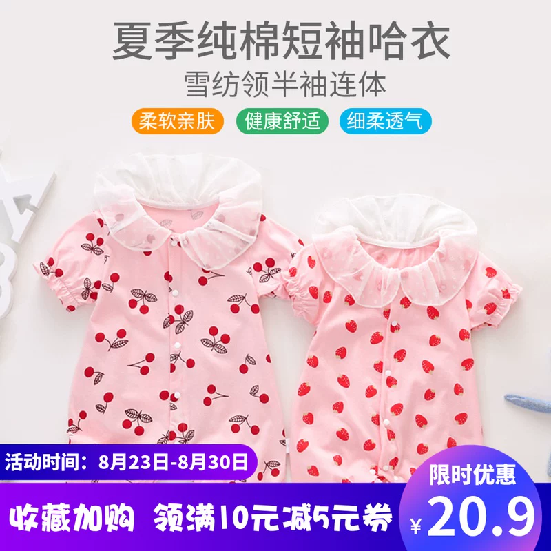 Quần áo mùa hè cho bé sơ sinh quần áo một mảnh mùa hè cotton thoáng khí in ngắn tay cô gái bé gái leo núi quần áo - Áo liền quần