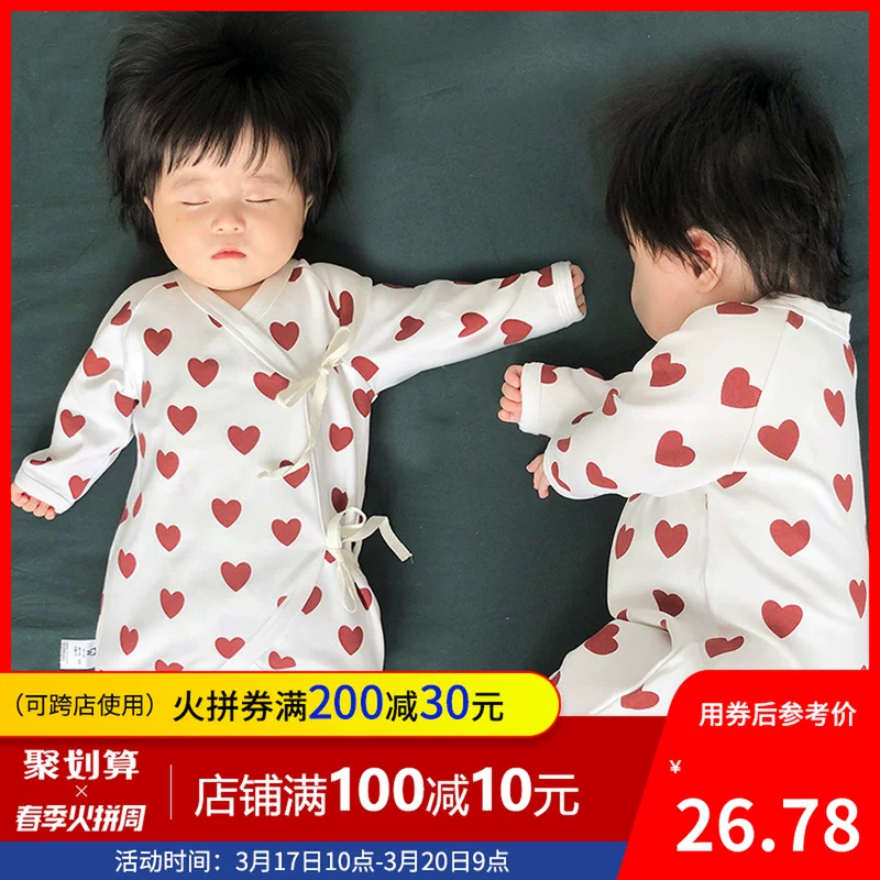 Tôi yêu cha mẹ mùa xuân và mùa thu cotton dài tay hajama sơ sinh mùa xuân và mùa hè quần áo trẻ em jumpsuit sơ sinh 50 cm - Áo liền quần