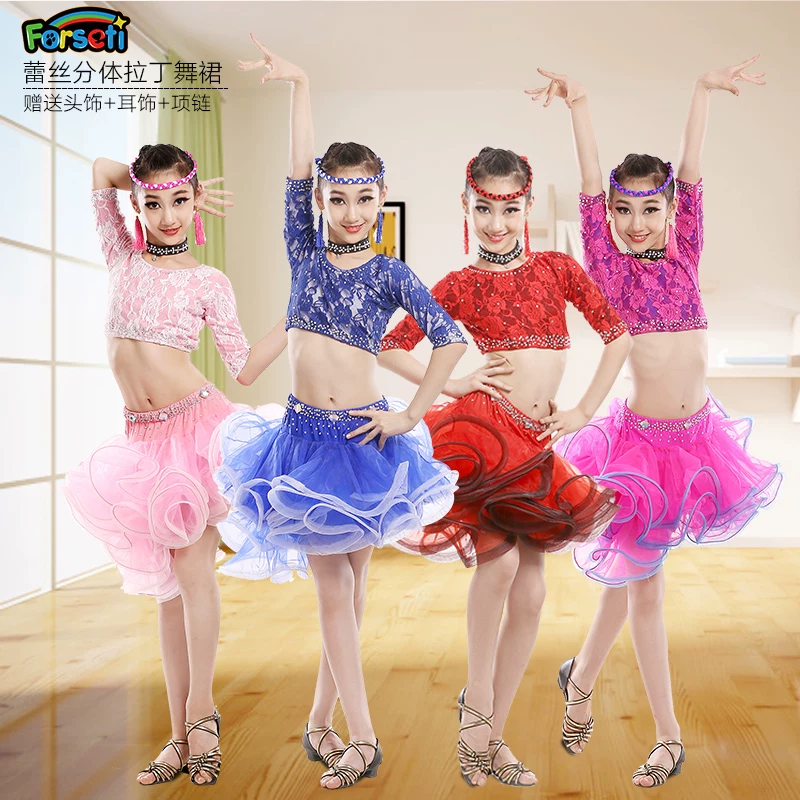 Trẻ em khiêu vũ Latin trang phục thi thi trang phục biểu diễn trang phục cô gái ren kim cương khiêu vũ váy trình diễn váy khiêu vũ - Trang phục