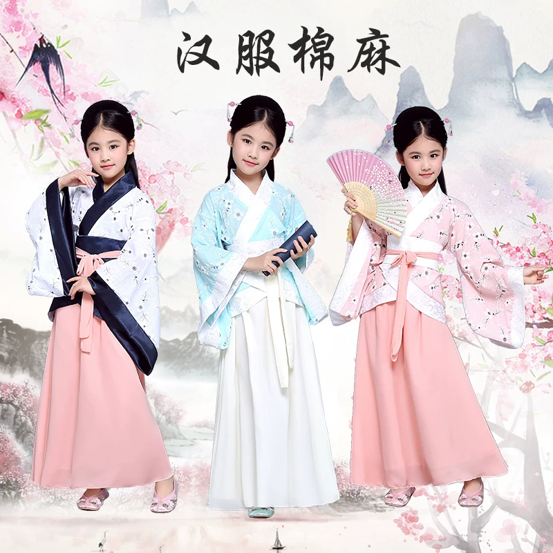 Cô gái Hanfu Bảy nàng tiên Trang phục cổ được cải tiến Guzheng Studio Trang phục biểu diễn dành cho trẻ em Trang phục cotton và lanh cho trẻ em Phong cách Trung Quốc Thu Đông - Trang phục