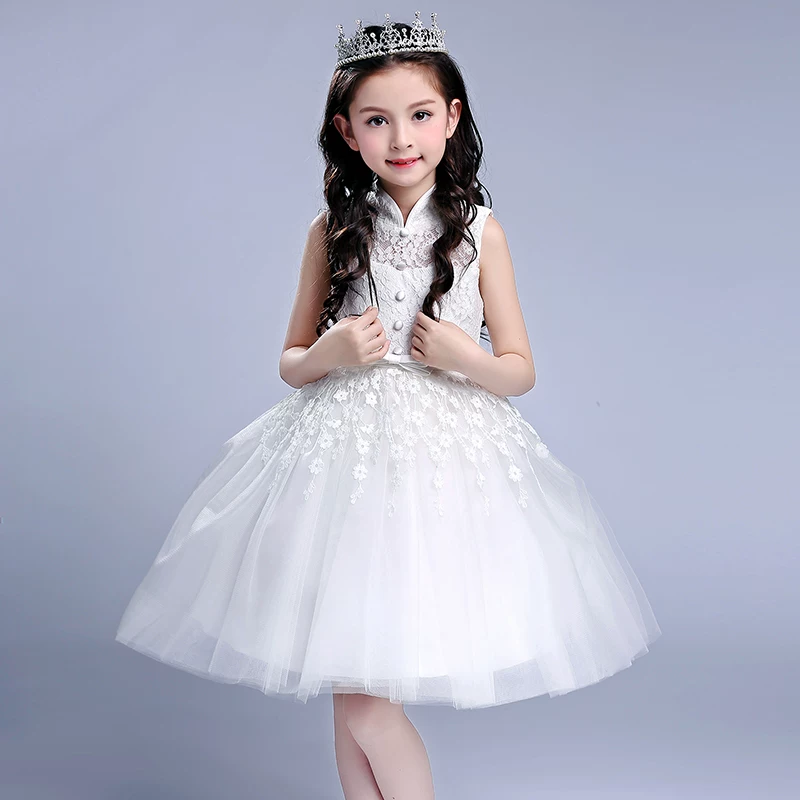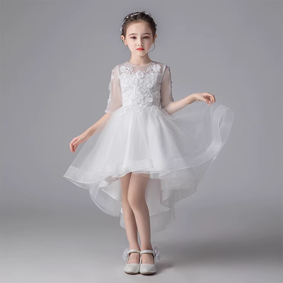 Váy trẻ em, cô gái bán hoa, váy cưới, người mẫu nhỏ, trang phục catwalk, trang phục biểu diễn của cô gái dẫn chương trình, màu trắng cao cấp - Váy trẻ em