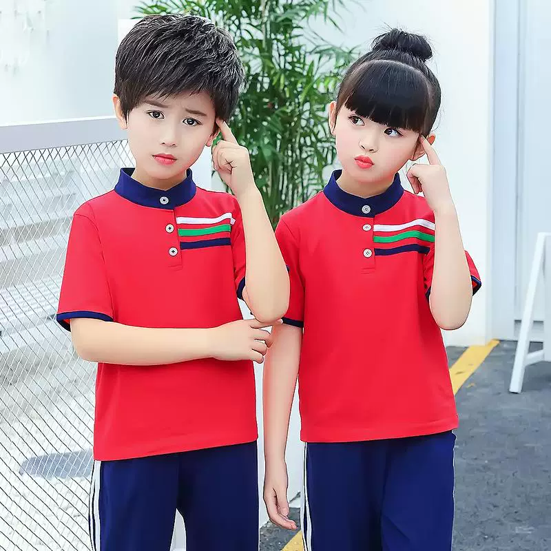 Đồng phục học sinh cấp 1 cấp 1, đồ thể thao hè, đồng phục lớp trẻ em, đồ hè, đồng phục mẫu giáo, áo thun cotton tay ngắn - Đồng phục trường học / tùy chỉnh thực hiện
