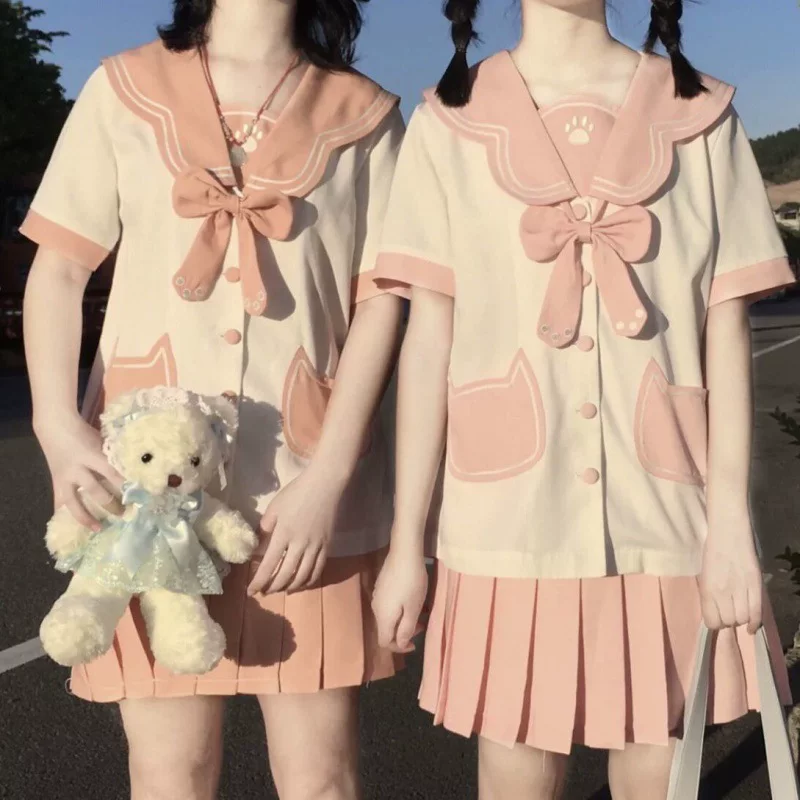 Mới [Bộ đồ hai mảnh] Váy Nhật Bản mùa hè tươi trẻ và dễ thương Đồng phục lớp học sinh Hàn Quốc ngắn tay Đồng phục học sinh Hệ thống JK - Đồng phục trường học / tùy chỉnh thực hiện