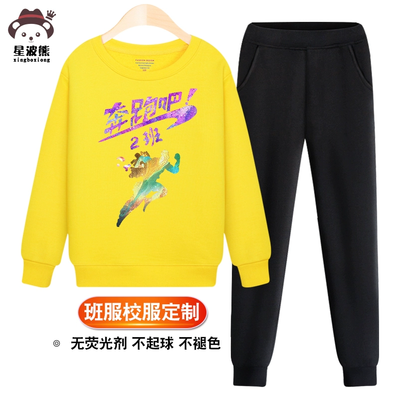 Trường tiểu học thí nghiệm thứ hai Bắc Kinh Yanan Branch College phong cách đồng phục áo len dài tay màu vàng thể thao phù hợp với mùa xuân và mùa thu - Đồng phục trường học / tùy chỉnh thực hiện