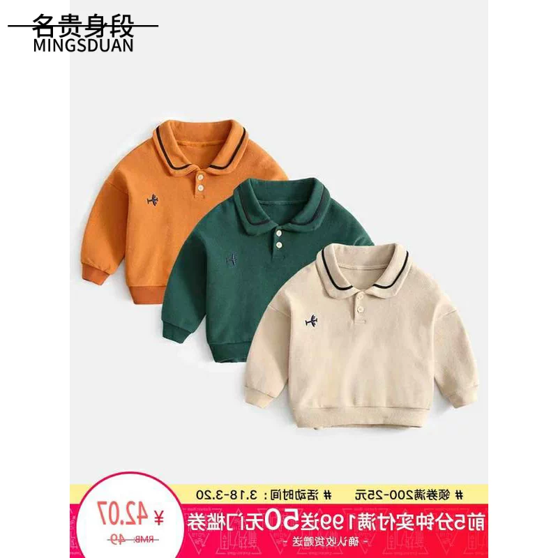 Áo len mới cho trẻ em mùa xuân và mùa thu Quần áo trẻ em đứng đầu bé trai và bé gái cổ tròn Áo thun dài tay chạm đáy - Khác