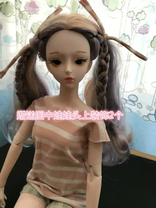 Mô phỏng búp bê nữ 3 phút 60 cm chung váy bông phụ kiện áo phông ngắn tay màu hồng cam sọc trên - Búp bê / Phụ kiện