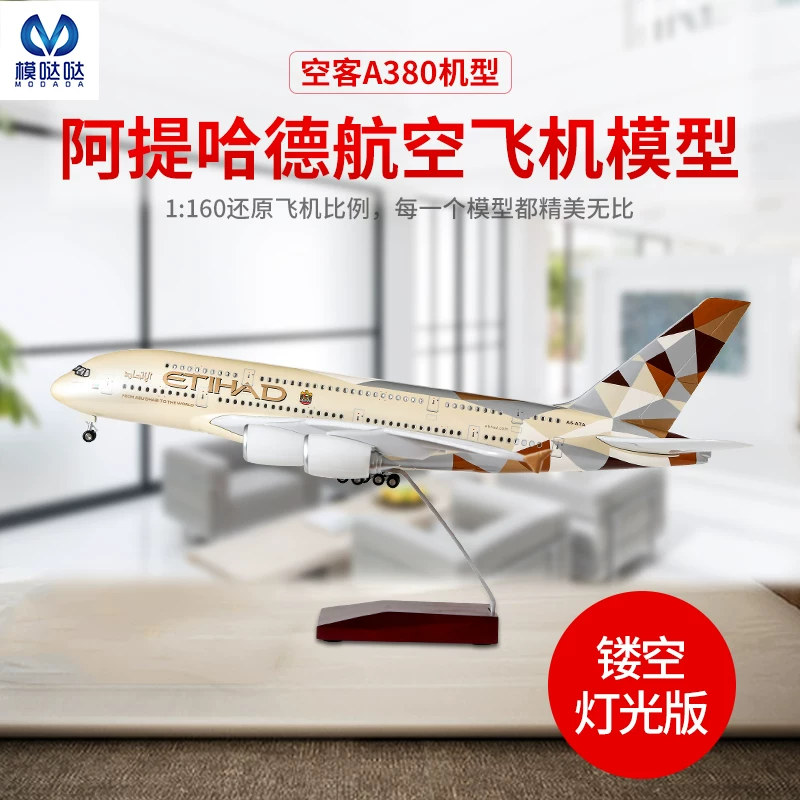 Phiên bản có đèn rỗng Etihad Mô hình máy bay Airbus A380 Bộ sưu tập Triển lãm hàng không Quà tặng lưu niệm - Chế độ tĩnh