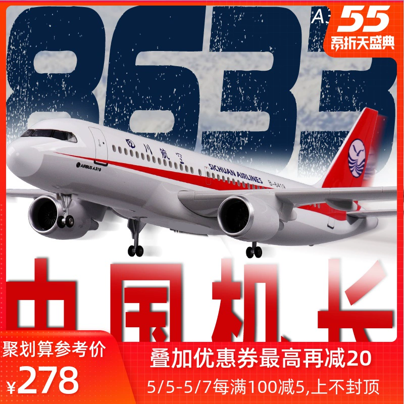 Mô hình máy bay chở khách mô phỏng có bánh xe và đèn 47cm Mô hình máy bay Airbus a319 Sichuan Airlines China Captain Sichuan 8633 - Chế độ tĩnh