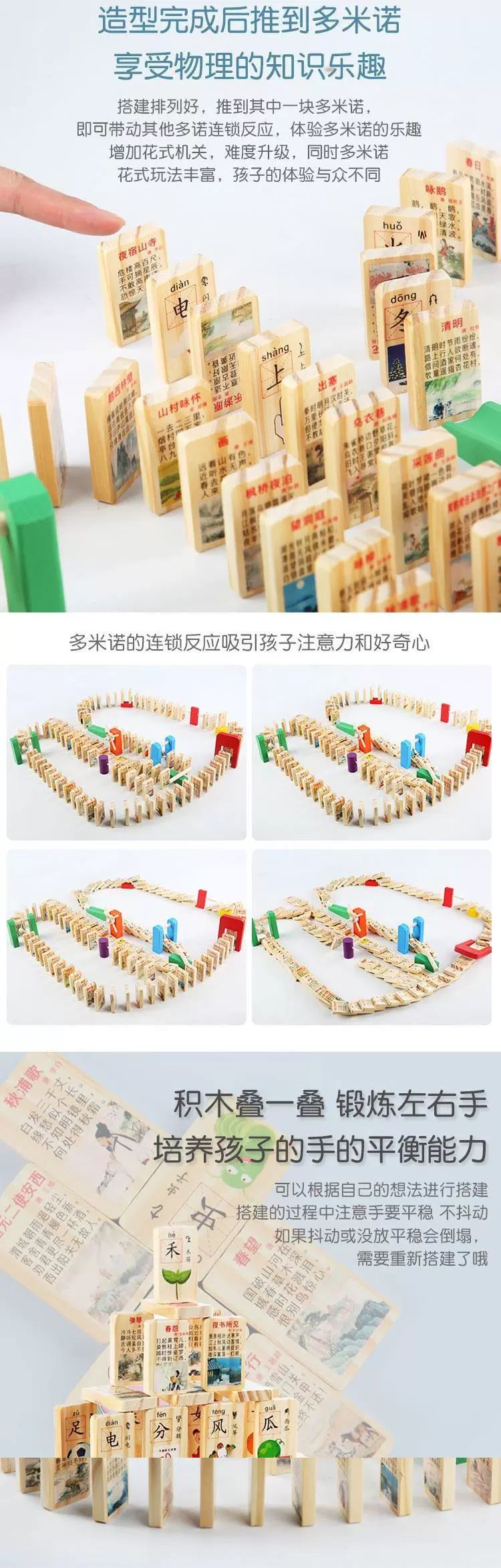 100 miếng bóng gỗ, chữ Hán, thơ cổ, domino, giáo dục sớm cho trẻ em, đồ chơi khối xây dựng nhận thức - Khối xây dựng