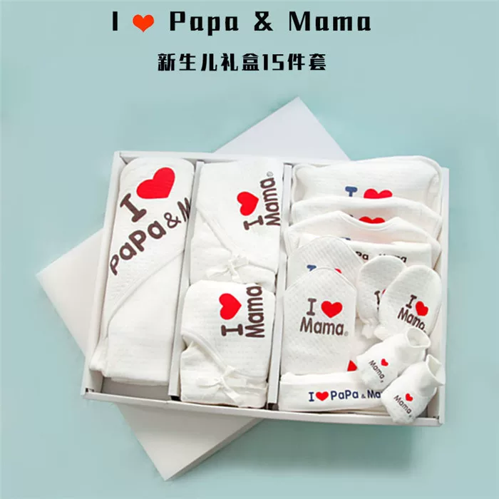 Tôi yêu cha mẹ hộp quà sơ sinh xuân thu đông bộ quà tặng sinh nhật trăng tròn bé bé quần áo cotton in - Bộ quà tặng em bé