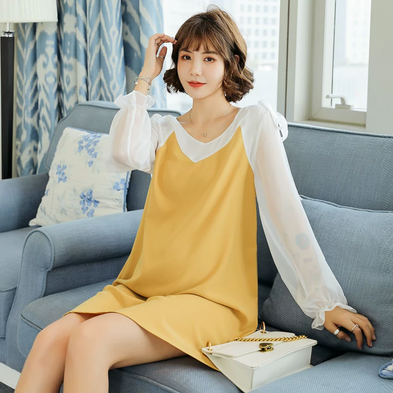 Thời trang bà bầu mặc mùa hè 2020 tay áo lồng đèn voan mới kiểu phương tây váy suông mỏng cho mẹ - Áo thai sản