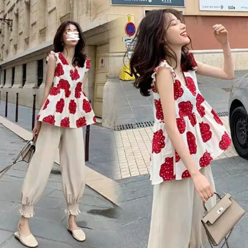 Quần áo bà bầu phù hợp với mùa hè 2020 mới hợp thời trang mẹ thời trang nhỏ hương thơm nước ngoài phong cách sóng chấm đầu quần hai mảnh - Áo thai sản