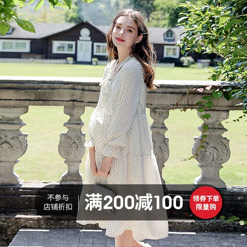 Đầm bà bầu thời trang mùa thu 2020 đầm bà bầu mới phụ nữ đầm bà bầu rộng váy dài qua đầu gối mùa xuân và mùa thu - Áo thai sản