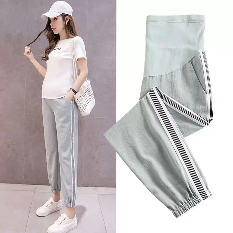 Quần bầu bà bầu xuân hè, quần thể thao mỏng, quần chín điểm, thời trang, quần âu nữ hàn quốc mùa hè - Phụ nữ mang thai quần / quần bụng