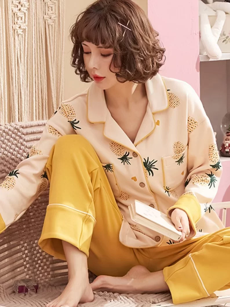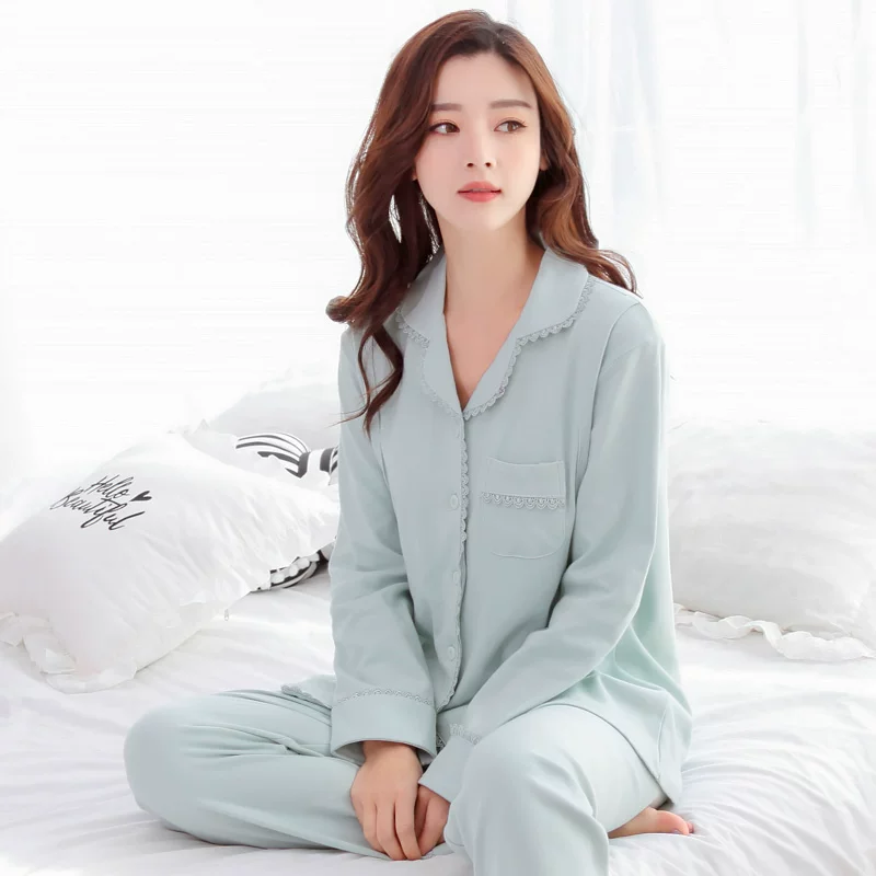 Qoniya 05423 Bộ quần áo cho con bú cho bà mẹ cho con bú bằng vải cotton tinh khiết Bộ đồ ngủ mùa xuân và mùa thu Bộ đồ ngủ hai mảnh - Giải trí mặc / Mum mặc
