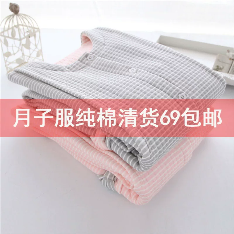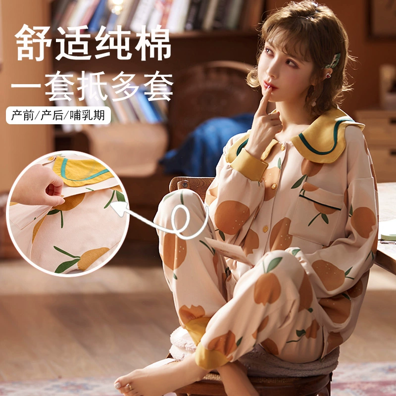 Quần áo giam giữ mùa xuân và mùa thu bộ đồ ngủ cotton tinh khiết cho phụ nữ mang thai sau khi sinh con, mùa xuân cho con bú và cho con bú, bộ quần áo phục vụ tại nhà cho bà bầu - Giải trí mặc / Mum mặc