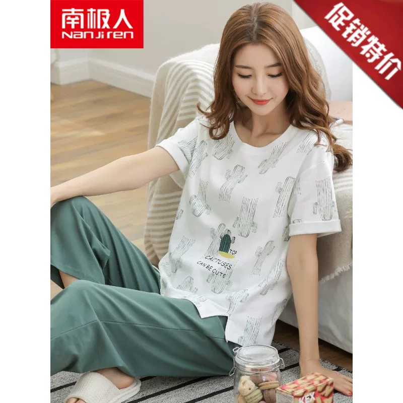 Nam cực đồ ngủ nữ mùa hè cotton ngắn tay cắt quần hai mảnh phiên bản Hàn Quốc rộng rãi có thể được mặc bên ngoài bộ đồ phục vụ tại nhà - Giải trí mặc / Mum mặc
