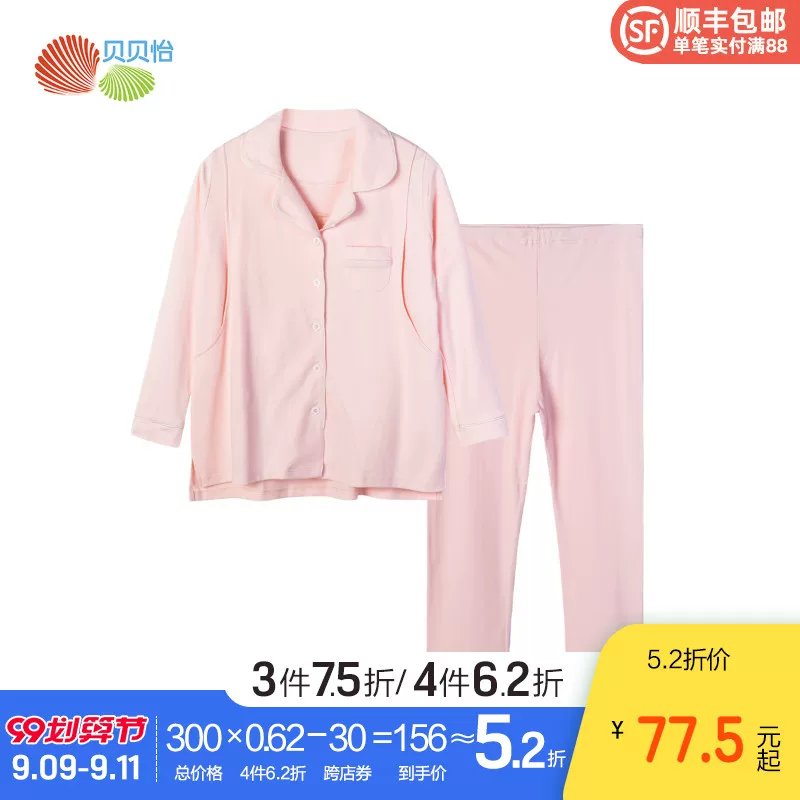 . Quần áo giam giữ mùa xuân và mùa thu cotton tinh khiết phụ nữ mang thai sau sinh mùa hè mỏng phần mang thai cho con bú bộ đồ ngủ mở ngang viện dưỡng lão - Giải trí mặc / Mum mặc