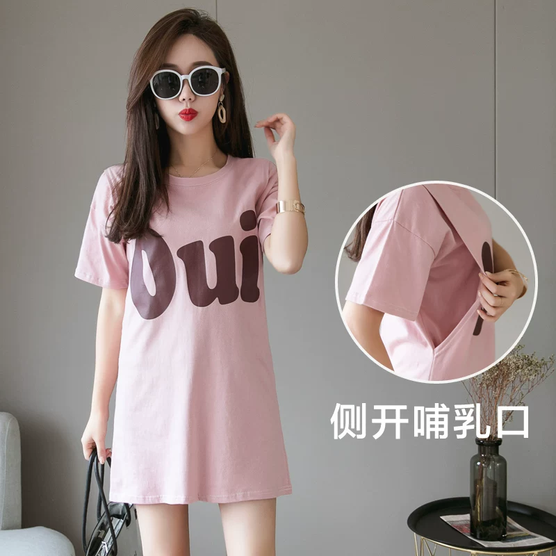 Phiên bản Hàn Quốc của quần áo bà bầu, đồ mặc nhà, váy ngủ, cho con bú mùa hè 2020 T tay ngắn cho con bú bằng cotton mỏng - Giải trí mặc / Mum mặc