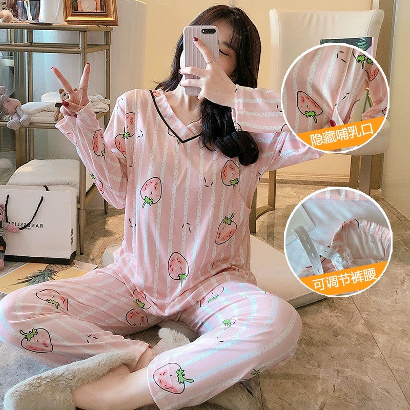 Quần áo giam giữ phụ nữ mang thai bộ đồ ngủ mùa xuân và mùa thu ở nhà sau sinh cho con bú mẹ mùa thu và mùa đông cho con bú mỏng - Giải trí mặc / Mum mặc