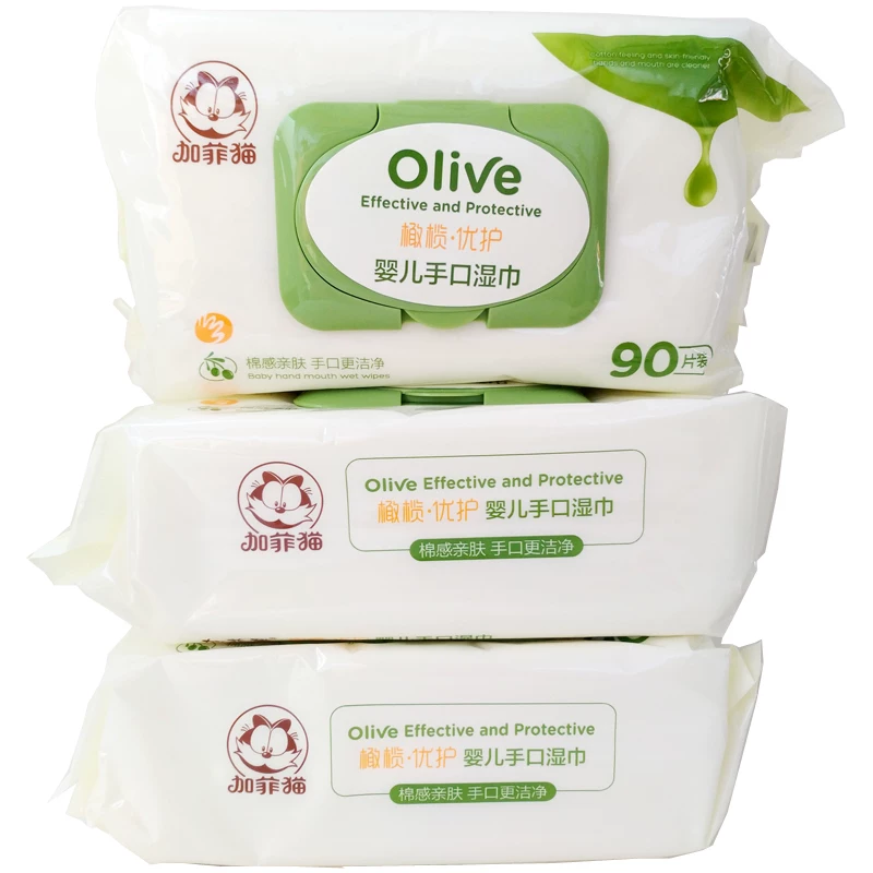 Garfield Khăn Miệng Tay Cho Bé Có Nắp Khăn Lau Cho Bé Sơ Sinh Giấy Lau Chăm Sóc Da 90 Miếng * 3 Gói Tặng 1 Gói - Khăn ướt