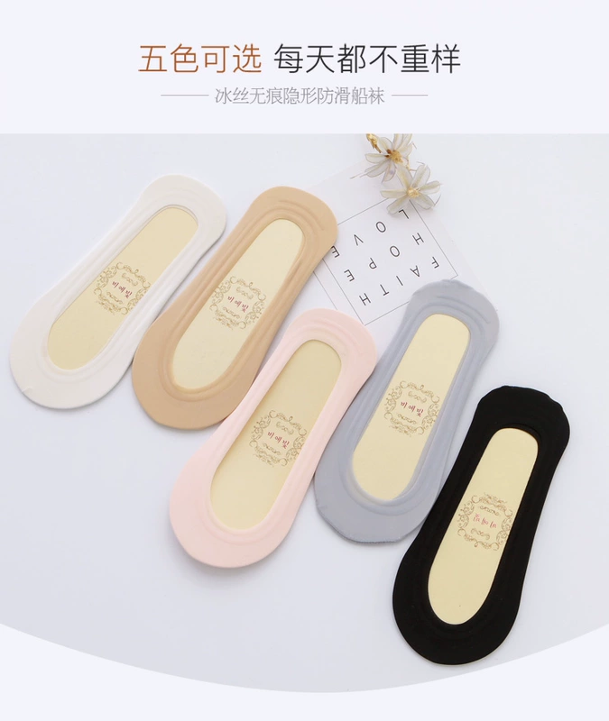 10 đôi tất thuyền lụa băng tất nữ bông tinh khiết miệng nông vô hình màu da thoáng khí mùa hè tất mỏng silicone chống trượt - Bít tất nữ