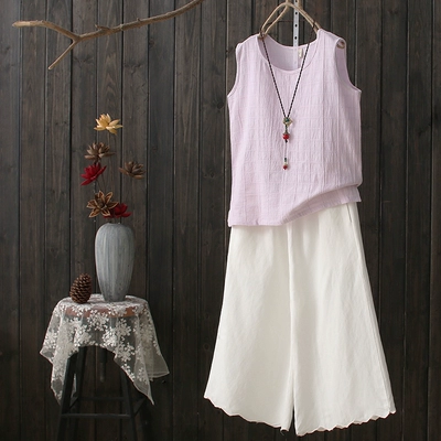 2017 mùa xuân dưới cùng vải lanh cotton lanh của phụ nữ sling áo vest không tay của phụ nữ mặc bên ngoài lỏng lẻo đầu mùa hè ngắn - Áo ba lỗ