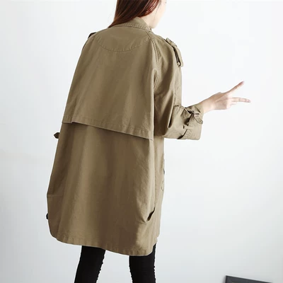 2019 mùa thu mới của phụ nữ phong cách hàn quốc lỏng lẻo giản dị trung bình dài hai lớp áo khoác trench coat của phụ nữ áo khoác mùa xuân và mùa thu thủy triều - Trench Coat